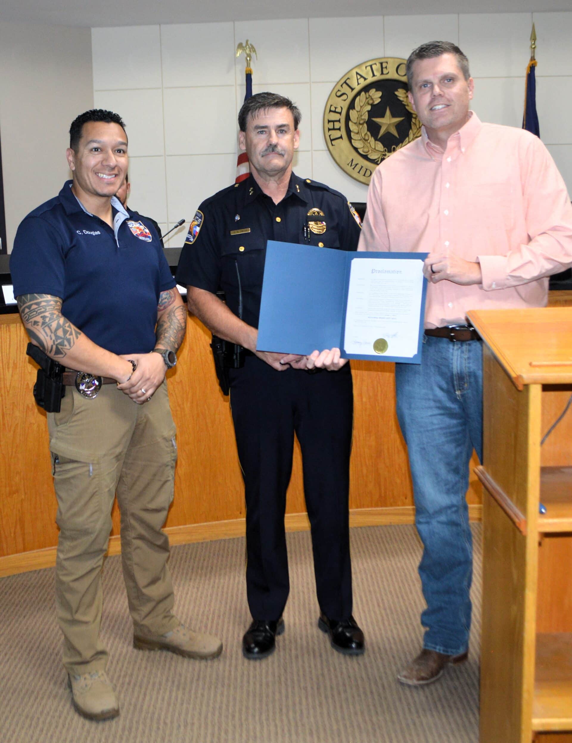 Officer Chris Douglas, Midlothian Police Chief, Midlothian Mayor Justin Coffman