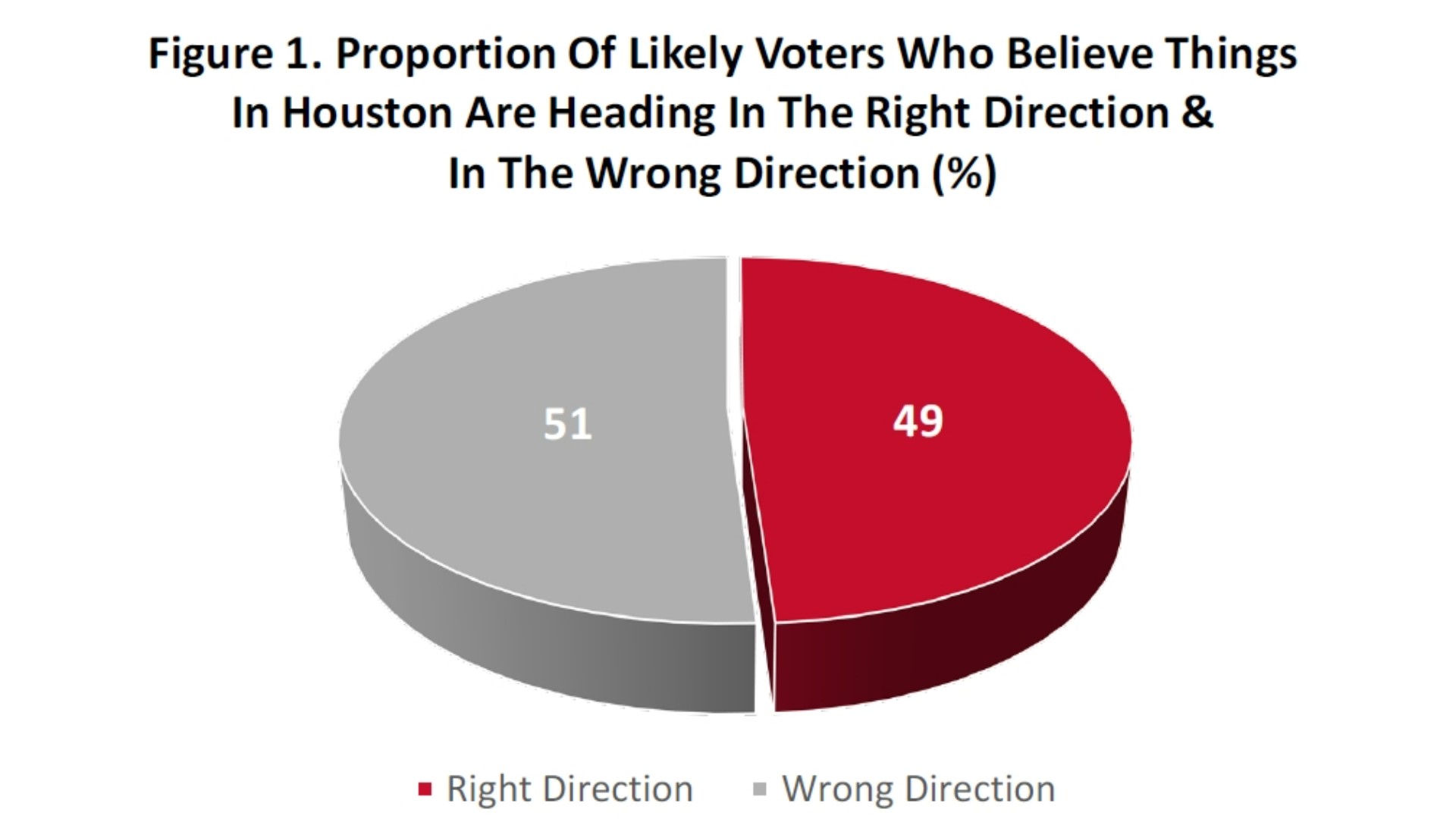According to the survey, 51% of likely Houston voters said they believe things in Houston are heading in the wrong direction.