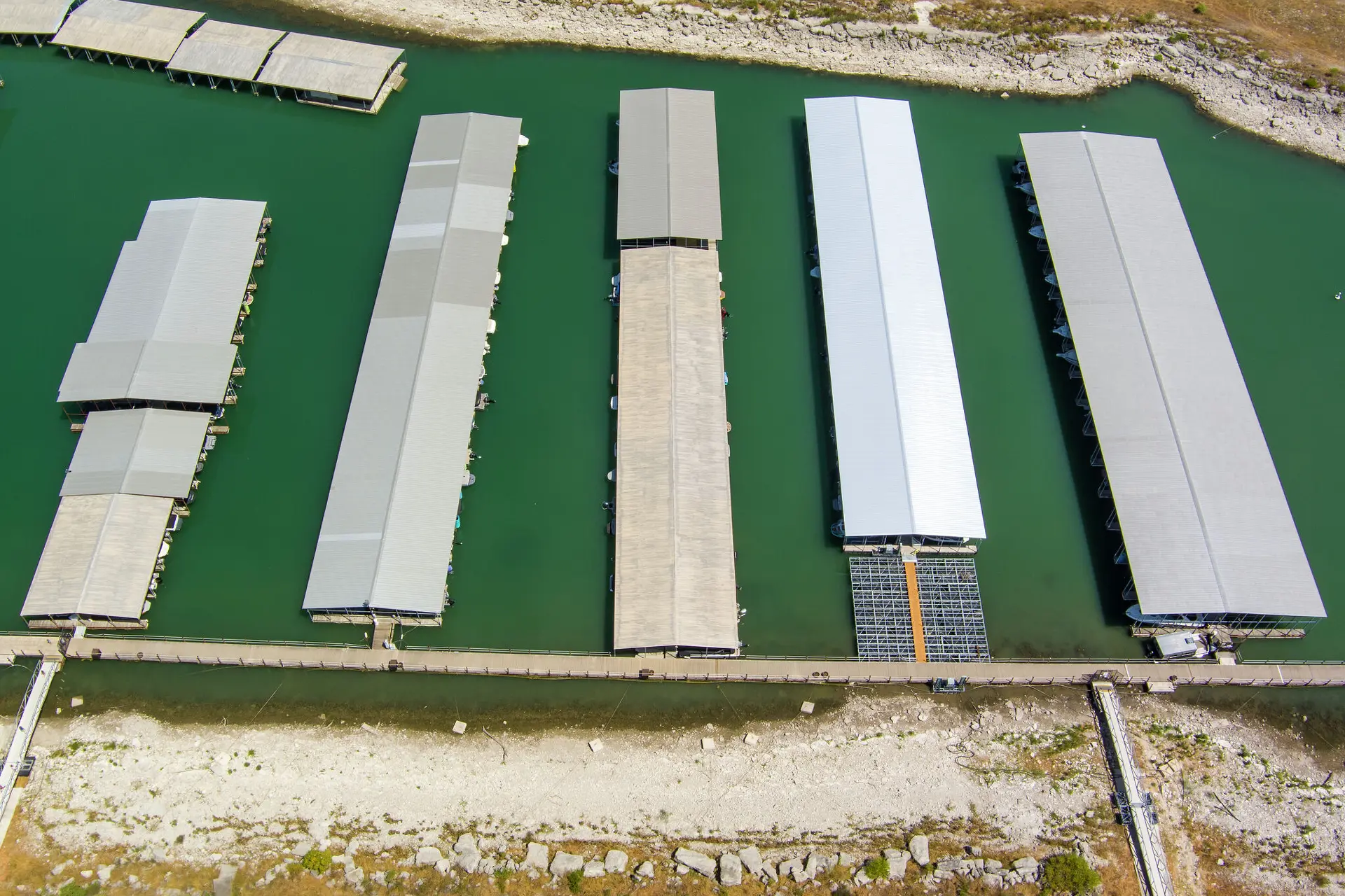 The Cranes Mill Marina is seen Monday, July 24, 2023, on Canyon Lake as water levels continue to drop at the popular reservoir. Canyon lake was 72.2 percent full and 14.2 feet low Monday, according to the Texas Water Development BoardÕs Water Data for Texas website.