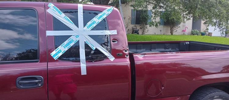 Bullet holes can be seen in Lacresha Murray's truck. Murray was shot by off-duty Copperas Cove police officer Eric Stoneburner, officials said.