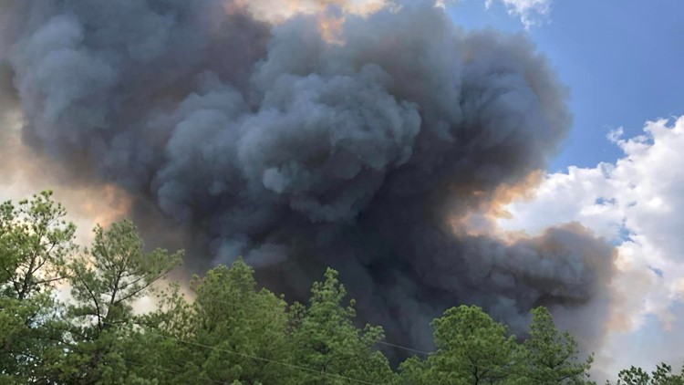 The Texas A&M Forest Service said at 9:34 p.m. that the fire has grown to an estimated 1,200 acres and is 10% contained. That's up from a reported 500-acre estimation at 5:27 p.m. At 5:54 p.m., the forest service announced a temporary flight restriction was in place to accommodate firefighting aircraft.