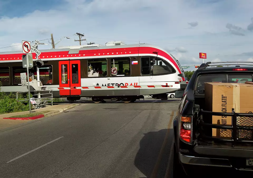 Austin's MetroRail commuter line along Airport Boulevard near 45th Street.