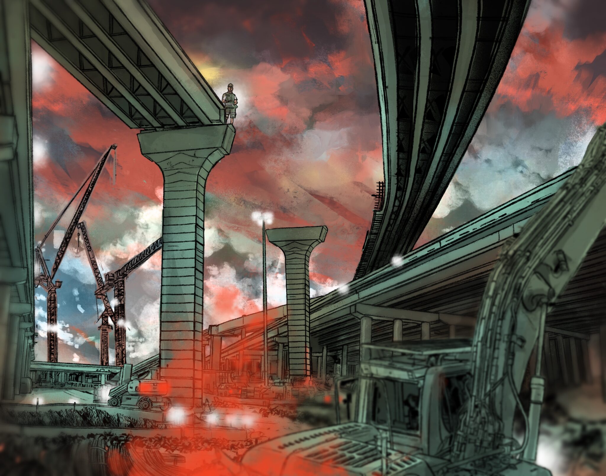 They shared their no-frills motel room with a coworker, sleeping only a few hours just to get up and work again. Their shifts were punishing—nine to 12 hours, often overnight, seven days a week. But that evening, as the Houston sky gradually dimmed to a streetlight-stained dark gray, Alejandro, Juan, and five others on their crew established a rhythm. Alternating thumps and whirrs sounded as they laid and bolted corrugated metal decking, piece by piece, onto the tollway’s four bridge girders, 85 feet above the ground.