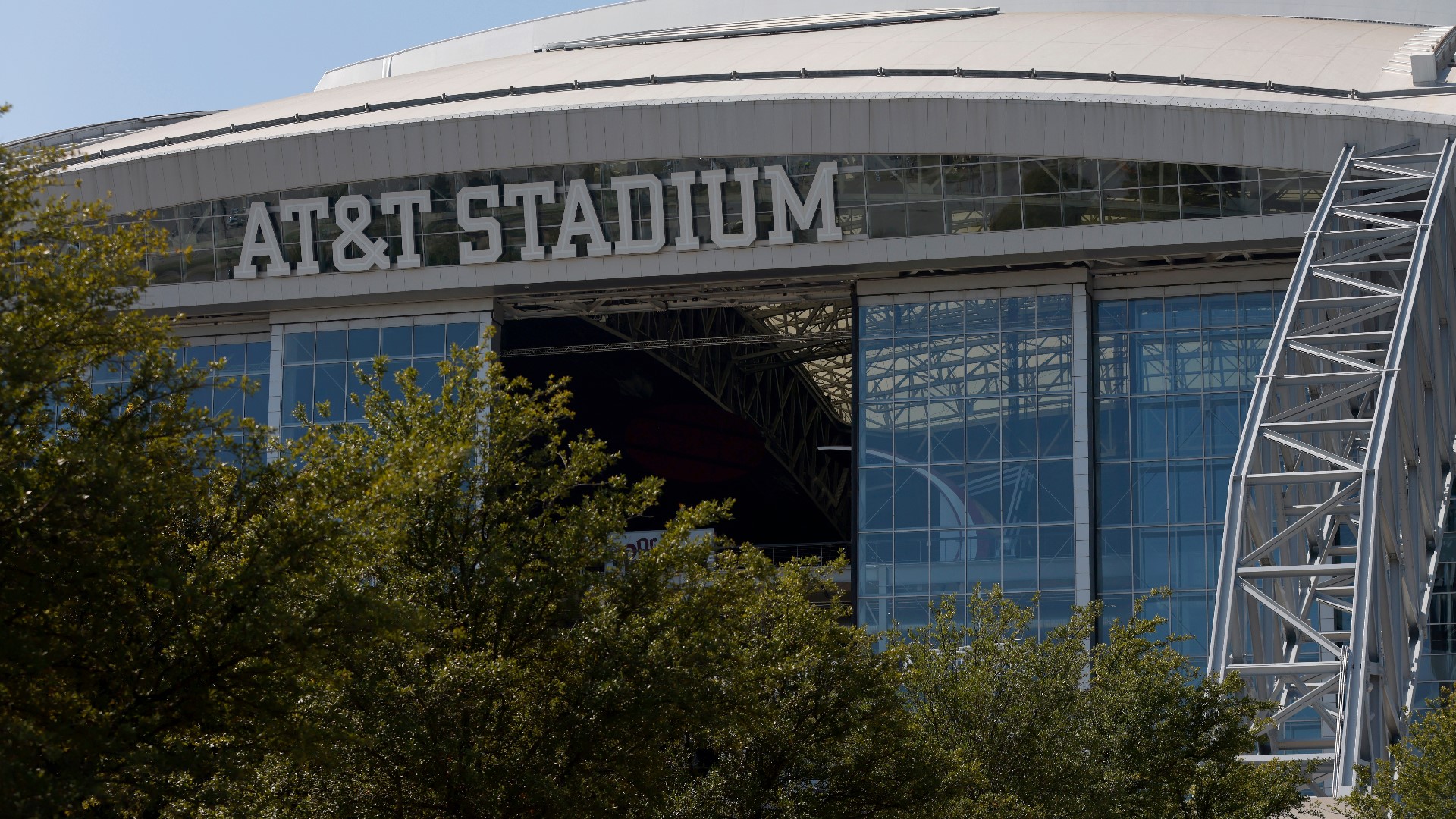 The outside of AT&T Stadium is shown before an NFL football game between the Dallas Cowboys and the New York Giants in Arlington, Texas, Sunday, Oct. 11, 2020.