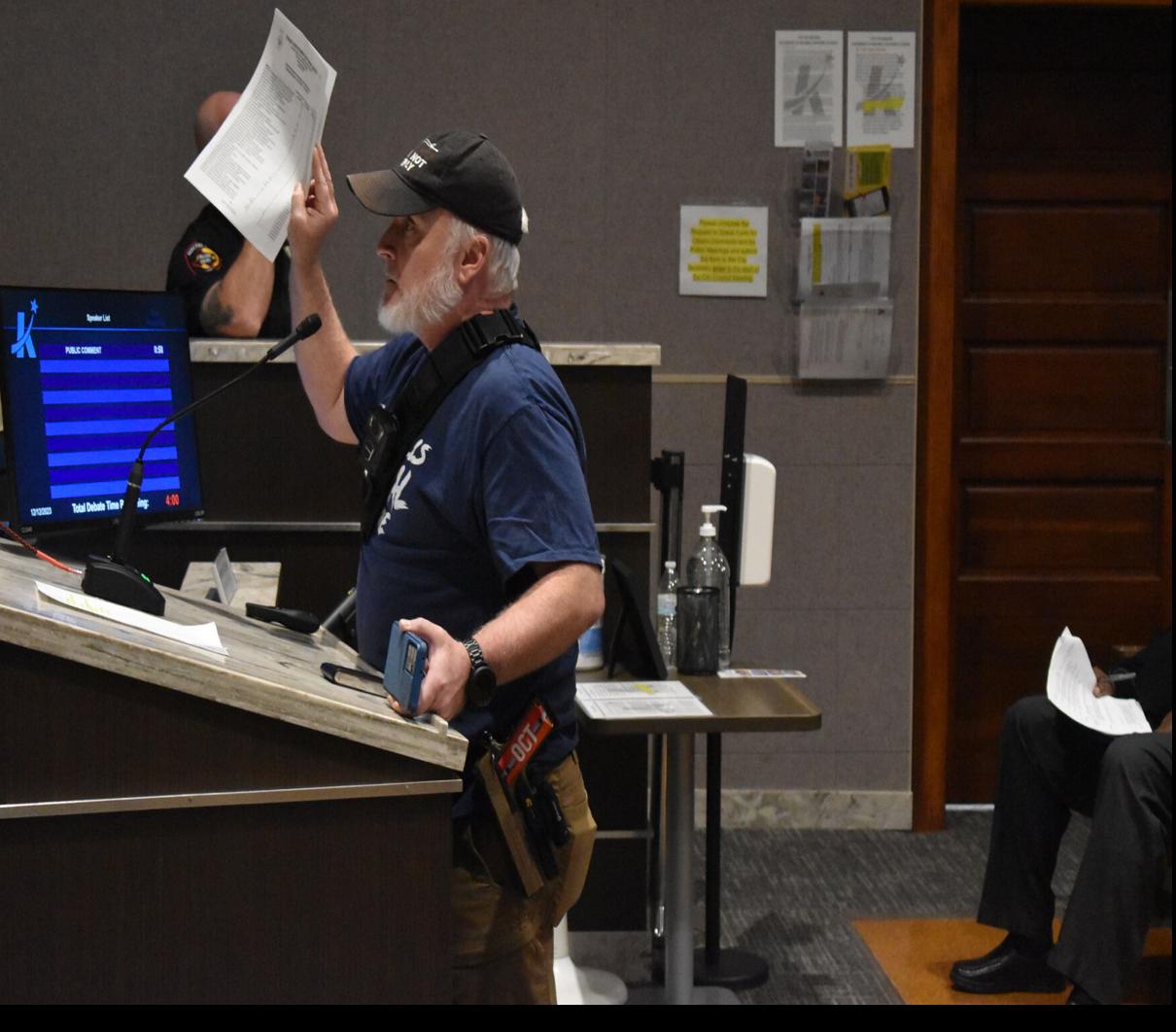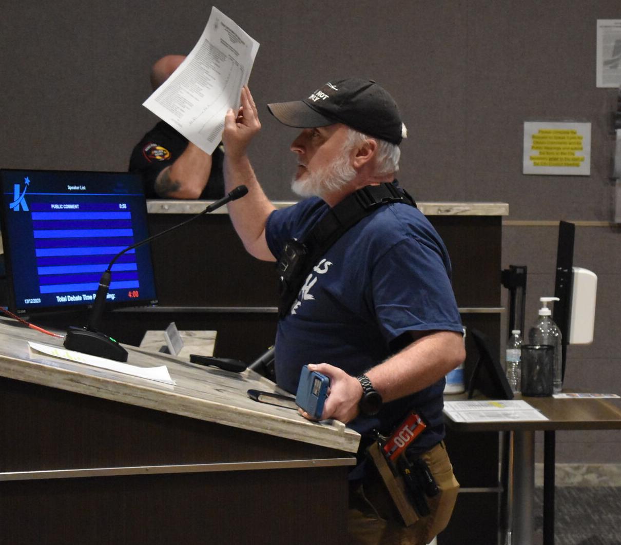 CJ Grisham of Open Carry Texas, a Temple resident, speaks before the Killeen City Council on Tuesday night. Grisham spoke in favor of keeping the gun ordinance pertaining to city meetings unchanged.