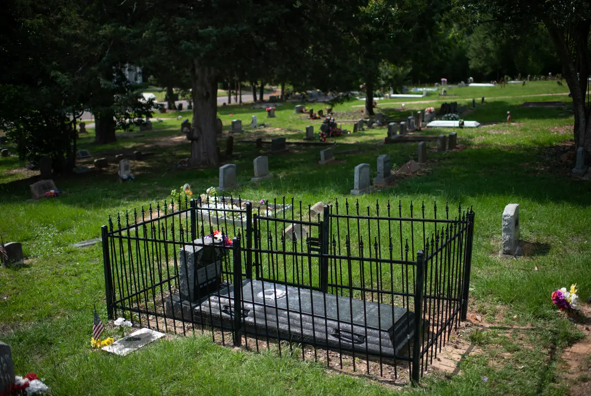 James Byrd Jr.’s burial plot is surrounded by an iron fence to prevent desecration to his grave at the Jasper City Cemetery.