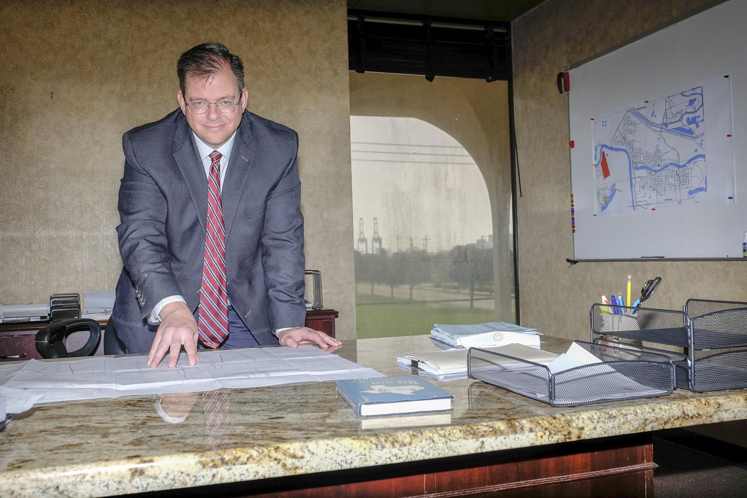Tim Kelty looks over water and sewage extension plans Nov. 7, 2018, in Freeport shortly after he took over as city manager. The Freeport City Council voted Wednesday to terminate Kelty’s employment.