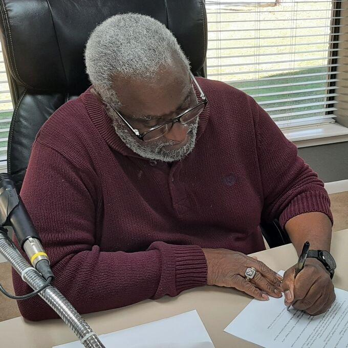 Jasper Mayor Anderson Land signs an agreement between the City of Jasper and Greg Kelley to serve as Interim City Manager while also continuing to serve in his current role as Public Works Director.