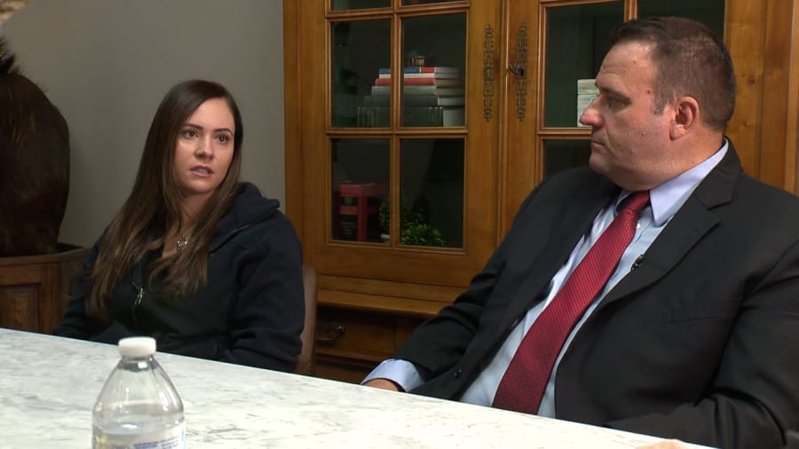 Officer Lacey Gonzalez (left) and attorney Adam Muery (right) speak with KSAT Investigates.