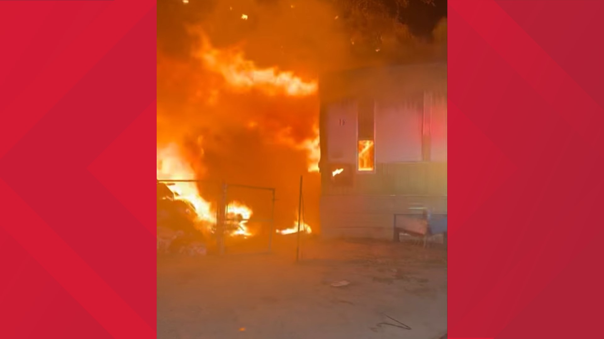 The first trailer was completely destroyed, but the second trailer was damaged and primarily burned on the exterior because of it being downwind from the first trailer house.