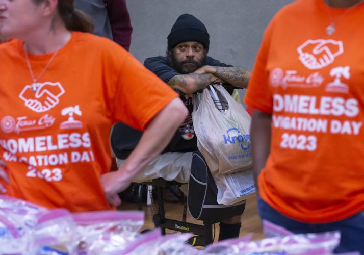 Eric Valdez waits to receive assistance at the inaugural Homeless Navigation Day at the Nessler Center in Texas City on Thursday.